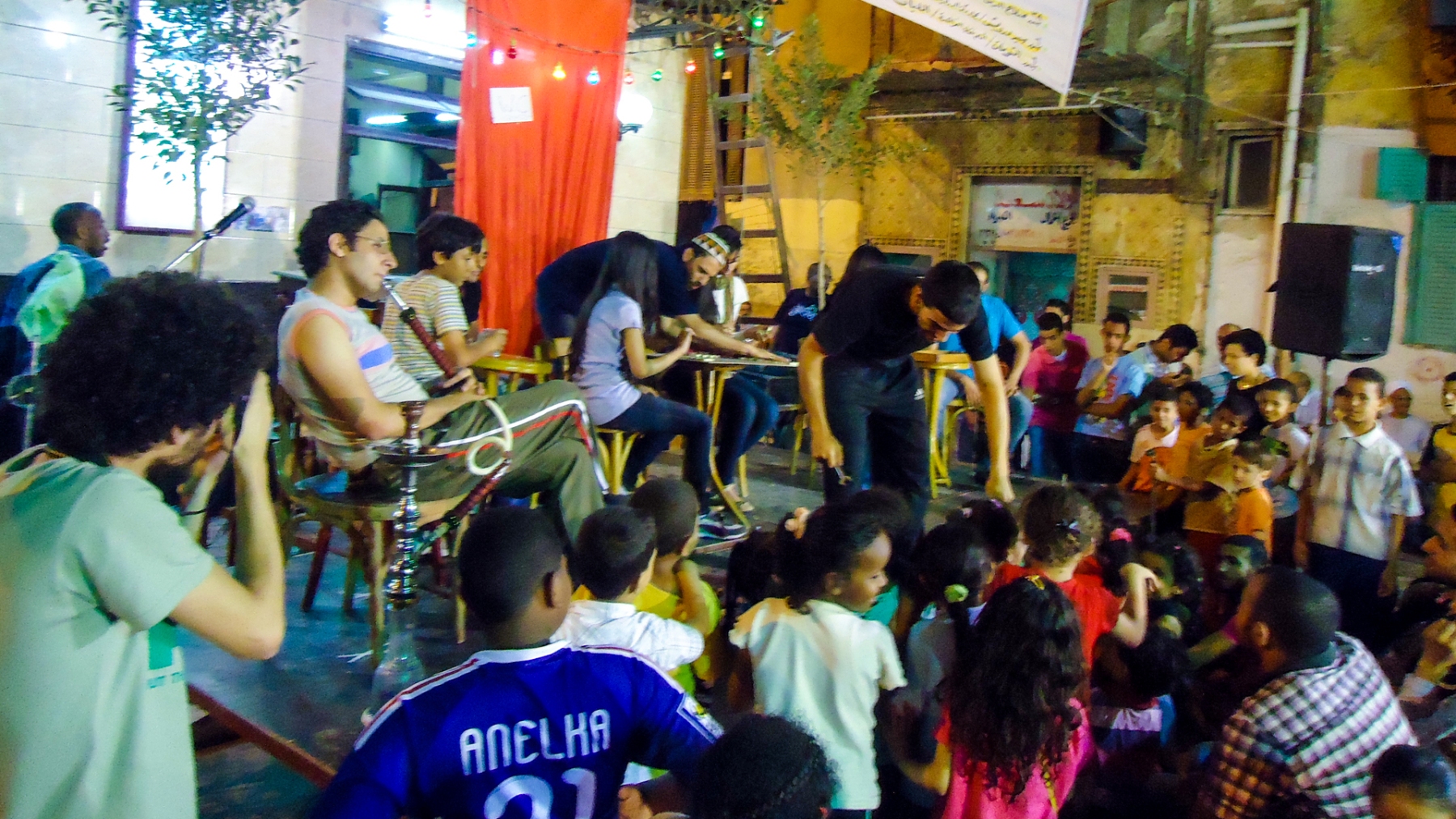 مزيج بين الموسيقي والمسرح الايمائي، تكونت اوركسترا من 15 شابا وفتاة، قدموا موسيقي من الاددوات المستخدمة في المقاهي، وقدموا عروضا مضحكة عن مشاكل المجتمع قدمت عدد من العروض علي مقاهي شعبية المدربان هما الفنانان الاجتماعيين: حسام العزازي من مصر، فرانسيسكو كابوزودو من اسبانيا